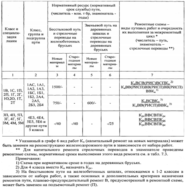 Нормативы устанавливают по пропущенному тоннажу только сроки проведения капитальных ремонтов, остальные виды ремонтов не регламентируют строго пропущенным тоннажем. Это даёт возможность дорогам с целью расходования средств варьировать ремонтными схемами, как по времени, так и по видам назначаемых промежуточных ремонтов в зависимости от эксплуатационных условий и фактического состояния каждого километра и позволяет обеспечить полное использование ресурса конструкции при необходимом уровне установленных скоростей.