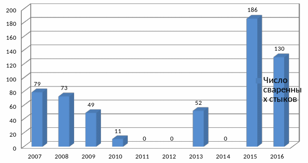 | Сварено стыков АЛТС в 2016 г. | 130 | ||