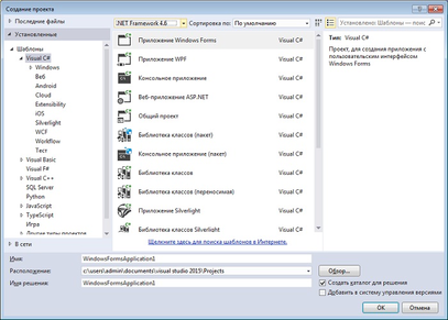 Создается проект приложения Windows Forms (рисунок 3.20).