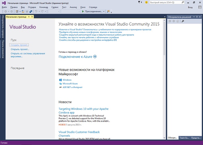 В итоге, запустится начальная страница Visual Studio (Рисунок 3.18).