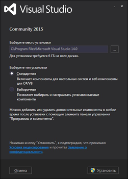 Для установки Visual Studio 2015 Community настраивается подключение к Интернету и запускается файл vs_community.exe (рисунок 3.14).