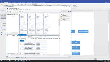 Для создания базы данных понадобится приложение MySQL Workbench. Для начала, создаются таблицы, их будет 94, начиная от названия района, заканчивая информацией о каждом владельце (рисунок 3.22).
