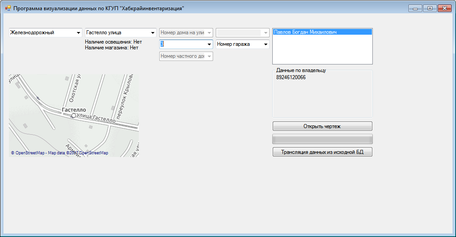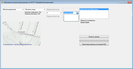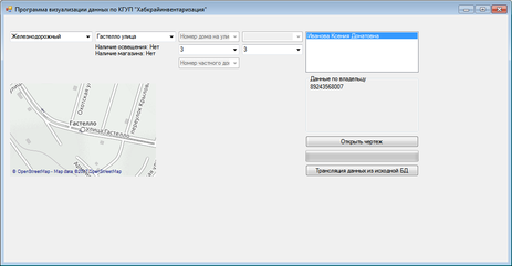 После выбора нужного объекта недвижимости, в окне появляются владельцы собственности, их может быть, как один, так и несколько и появляется кнопка «Открыть чертеж» (Рисунок 3.32)