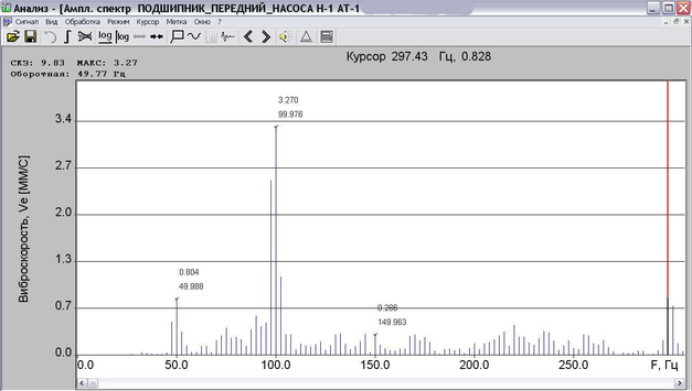 Рисунок 4.10 Спектр виброскорости агрегата Н-3