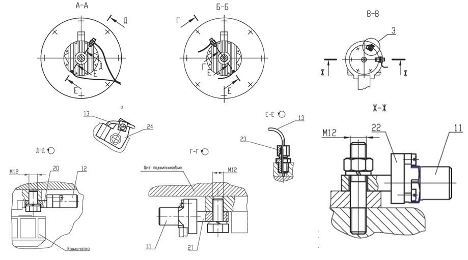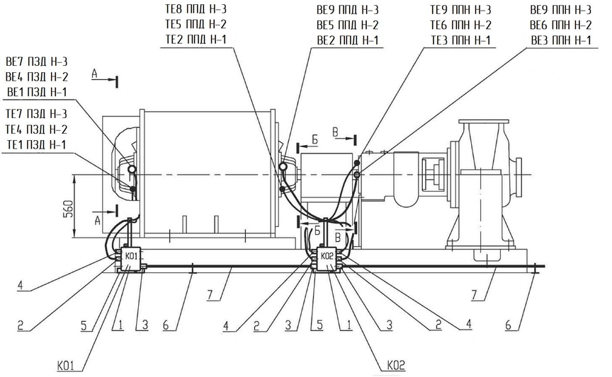 Рисунок 4.3 Схема расположения датчиков вибрации на агрегатах