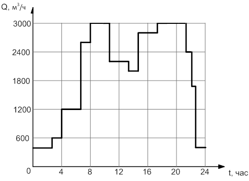 В течение суток водопотребление неравномерно. На рисунке 4.1 представлен примерный график суточного потребления.