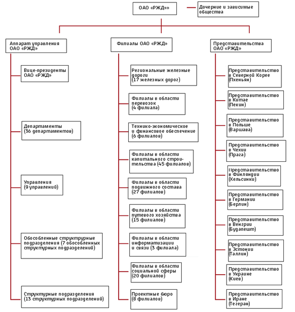 Организационная структура ОАО «РЖД»:
