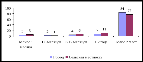 Как показывает рисунок, большинство опрошенных как в городских ОПС, так и в сельских пользуются услугами Почты России более двух лет, следовательно основной контингент потребителей услуг это так как называемые «постоянные клиенты». Но и тот факт, что у Почты России практически нет клиентов из категории «новичков» можно расценивать только отрицательно.