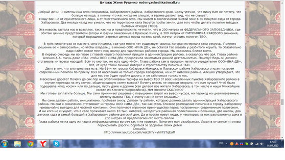 Рисунок П.2 – Обращение жительницы с. Некрасовка Евгении Руденко