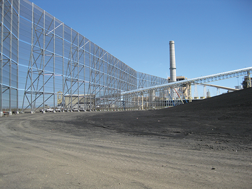 Другой метод, который доказал, что может уменьшить пыление угольных складов в некоторых ситуациях — возведение ветряного забора. Американская компания Dust Solutions Inc. (DSI) делает ветряные заборы, которые называются DustTamer. [56] Данные конструкции уже установлены на многих угольных электростанциях США, чтобы уменьшить пыление складов за счёт уменьшения скорости ветра около куч под открытым небом, бункеров, вагоно-опракидывателей, ленточных конвееров и других механизмов, которые работают на угольных складах.