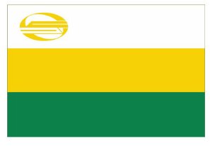 Флаг ДВГУПС, изображенный на рисунке 9, представляет собой прямоугольное полотнище из трех равновеликих горизонтальных полос: верхней – белого, средней – желтого и нижней – зеленого цвета. На белой полосе, слева, расположен фирменный знак университета.