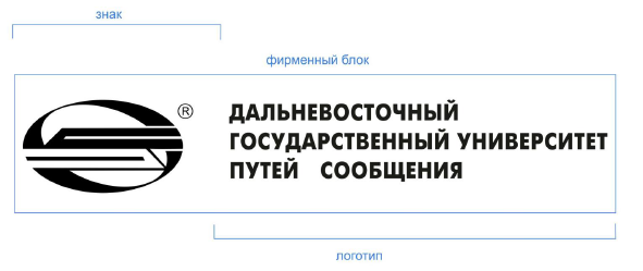 Фирменный блок ДВГУПС, изображенный на рисунке 8 представляет собой единую композицию, состоящий из двух графических элементов – логотипа (начертание название бренда) и фирменного знака (декоративное изображение в виде эллипса).