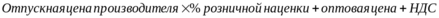 К отпускной цене организации оптовой торговли (без НДС) прибавляется предельная розничная надбавка, рассчитанная от фактической отпускной цены производителя (без НДС), указанной в протоколе согласования цены