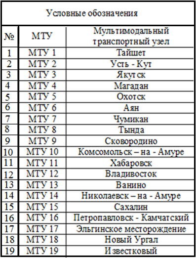 Пункт «зарождения» грузов это мультимодальные транспортные узлы, в котором осуществляется формирование грузовой массы с целью дальнейшей транспортировки в районы Дальнего Востока и Северо-Востока.