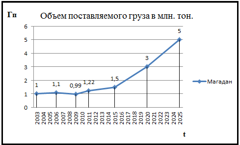 Рисунок 4.2 – Существующий и перспективный объем поставляемого груза в Магадан