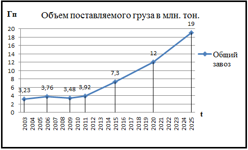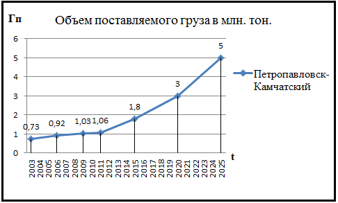 Рисунок 4.3 – Существующий и перспективный объем поставляемого груза в Петропавловск-Камчатский