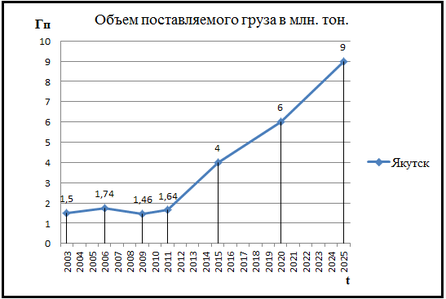 Рисунок 4.1 – Существующий и перспективный объем поставляемого груза в Якутск