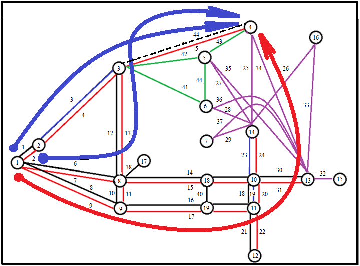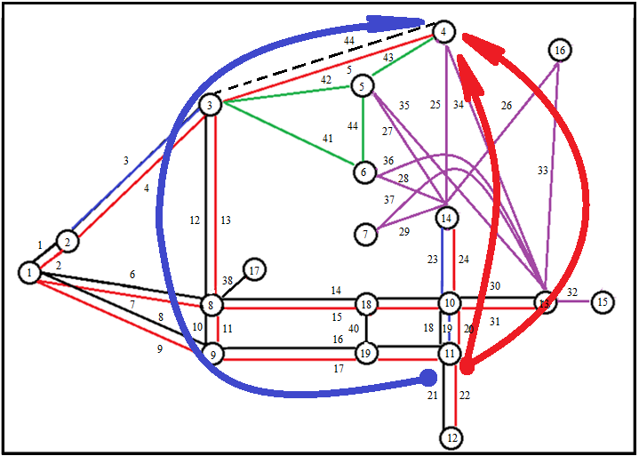 Рисунок 4.10 – Расчетная модель формирования региональных мультимодальных транспортных коридоров для завоза груза из Тайшета в Магадан