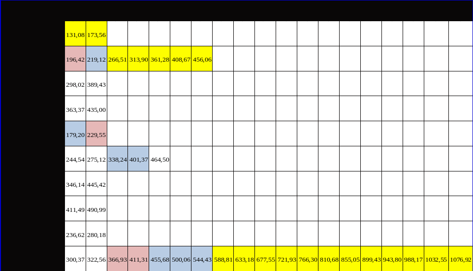 Для технико-экономической оценки вариантов региональных мультимодальных транспортных коридоров в начале необходимо рассчитать затраты на звеньях в широком диапазоне объемов перевозок. Расчет затрат производиться по формулам приведенные в параграф 3.3, коэффициенты затрат показаны в таблице 4.10. Результаты расчета критерия оптимальности по звеньям сети (табл. 4.11) и расчет критерия оптимальности по вариантам региональных мультимодальных транспортных коридоров Тайшет – Магадан приведены в таблице 4.12.