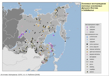 В рамках научно-исследовательской работы [26], было проанализировано наличие ресурсов на территории от Байкала до Сахалина и от Транссиба до Ледовитого океана. В результате этой работы были выделены около 80 месторождений (рис.1.4) из разведанных полезных ископаемых, каждое из которых при его освоении образует годовой грузооборот не менее 1 млн. тонн (табл. 1.1).