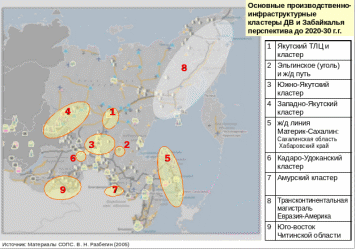 Сопоставительный анализ очагов природных ресурсов, предложенных учеными ДВГУПС и МИИТа, и кластеров, предложенных СОПСом, показал их совпадение (рис.2.3).
