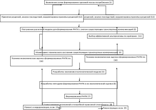 На базе прогнозов возможной грузовой базы на близкую, среднюю и далекую перспективу необходимо в блоке концепции 3 построить расчетную модель формирования искомых РМТК с учетом существующих транспортных коммуникаций и определением Гв(t) – возможной провозной способности их элементов.