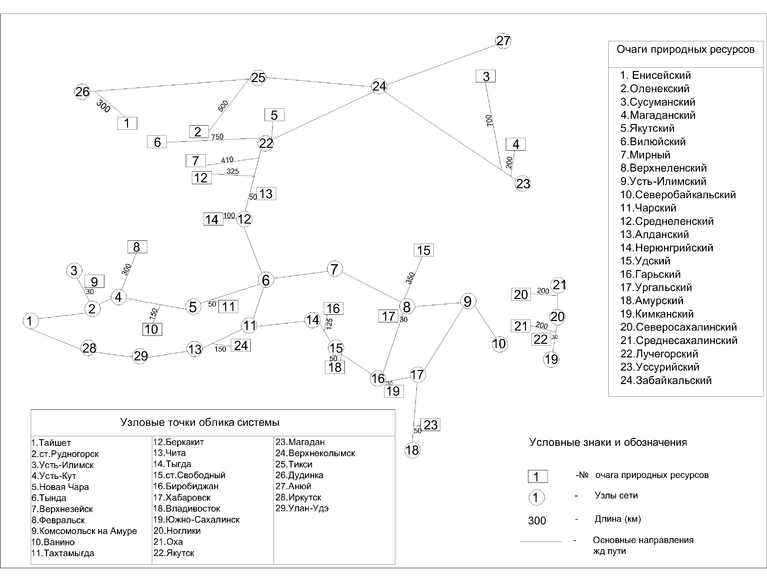 2.1 Разработка расчетной схемы для формирования РМТК малоосвоенных районов С и ДФО для связи очагов природных ресурсов с опорной транспортной сеть