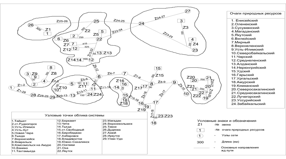 Таким образом, изображенные на рис.2.5 данные по очагам природных ресурсов и существующих транспортных коммуникаций малоосвоенных районов, является деревом целей для построения РМТК для связи очагов природных ресурсов с опорной транспортной сетью.