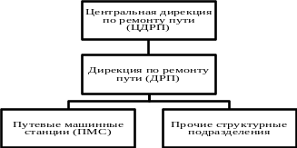 Второй уровень представлен дирекциями по ремонту пути, находящимися в прямом подчинении ЦДРП и осуществляющими подготовку, оперативное руководство и контроль выполнения плана ремонтно-путевых работ на уровне границ железных дорог – филиалов ОАО «РЖД». [34] Третий уровень (линейный) представлен структурными подразделениями ДРП. Путевые машинные станции выполняют все виды капитального и среднего ремонта, реконструкцию и модернизацию железнодорожного пути, сооружений и земляного полотна. Современная производственная база ПМС представляет собой производственную платформу с приближенными к индустриальным методами ведения работ с достаточным путевым развитием для доставки материалов верхнего строения пути, их складирования, межпозиционного транспортирования при производстве работ, складирования и отгрузки готовой продукции.