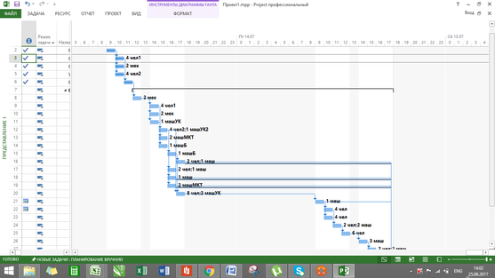 После внесения данных о проекте программа выдает возможные ограничения исполнения задач. При недостаточном количестве трудовых ресурсов может появиться иконка «красный человек», как на рисунке 3.1.