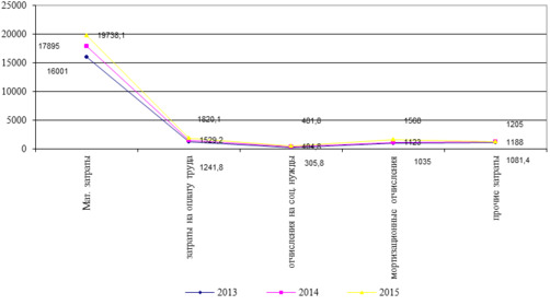 Состав и структура затрат на производство продукции за 2013-2015 гг.