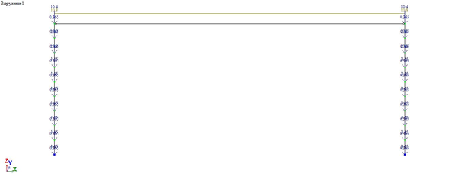 Приложенные в узлах силы Р1 , Р2,…Р6 получаем как произведение равномерно распределенной погонной нагрузки на длину панели..