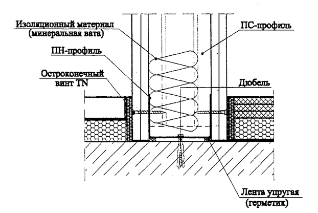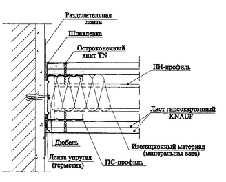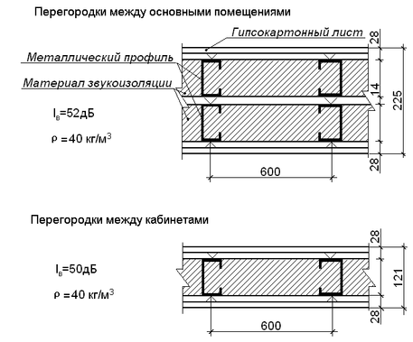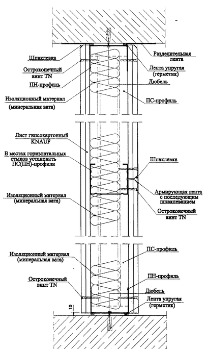 Перегородки выполняются поэлементно, толщиной 120 мм, (по технологии «Кнауф», сер. 1.031.9-3.07, в.1).