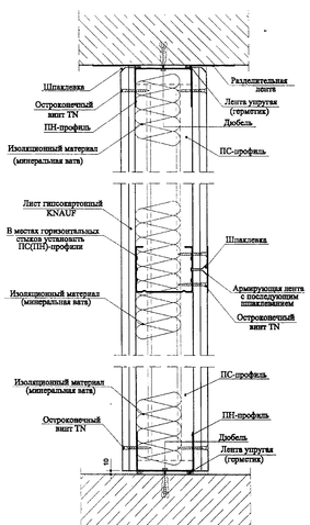 а) стык перегородок б) стык перегородки и наружной стены