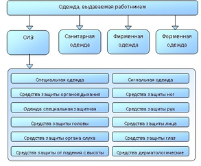 Выдача спецодежды, спецобуви и других средств индивидуальной защиты (СИЗ) осуществляется в определяемом Правительством Российской Федерации порядке, а также в соответствии с Типовыми нормами обеспечения работников определенной профессии (должности) средствами индивидуальной защиты. Классификацию специальной одежды, которая выдается работникам, представляется следующим образом: