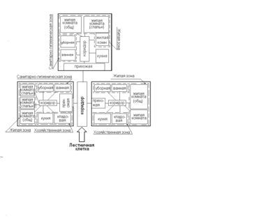 Для жилого дома квартирного типа главными помещениями в квартире являются жилые комнаты, где члены семьи проводят часы досуга, отдыхают. Приготовление пищи осуществляется на кухне, она должна быть связана с жилыми комнатами непосредственно или через коридоры. Санузел и ванная являются неотъемлемыми помещениями квартиры. Они должны быть удобно связаны с жилыми комнатами. Основным элементом связующим квартиру является прихожая.