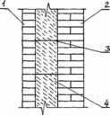 1 кладка из лицевого кирпича, 2 кирпичная кладка, 3 армирование, 4 утеплитель