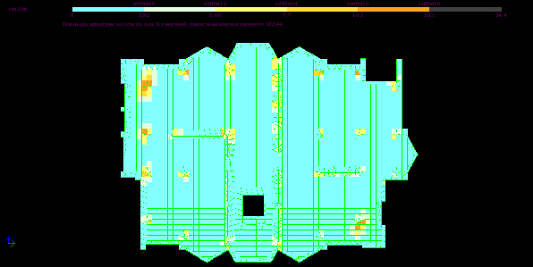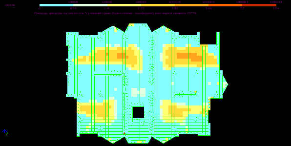 Рисунок П.4 Площадь арматуры по оси «У2 » у верхней грани