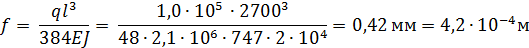 Прогиб от нагрузки 1,0 кН в середине пролета определяется по формуле и составляет: