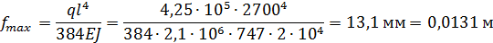 Допустимый вертикальный прогиб балки определяется по формуле:
