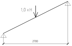 -косоур, загруженный сосредоточенный нагрузкой 1 кН в середине пролета.