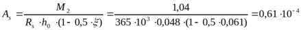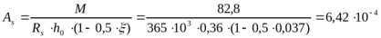 Требуемое сечение арматуры класса AIII, Rs = 365·МПа: