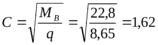 МВ = φb2·(1+φf)·Rbt·b·h02 = 2·1,17·0,9·0,75·103·0,15·0,312 = 22,8 кН