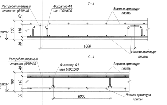- раскладка стержней верхнего яруса верхней арматурной сетки;