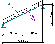 Расчетная схема лестничного марша - шарнирно-опертая по концам балка, наклоненная под углом α (см рис. 3.1). К балке прикладывается равномерно-распределенная погонная нагрузка. Расчетная нагрузка на 1 м длины марша q, (кН/м), определена по формуле: