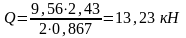 Поперечная сила Q, (кН) на опоре определена по формуле:
