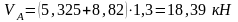 Расчетное значение поперечной силы Q, (кН) равно реакции опоры VA определено по формуле Q = 18,39 кН.