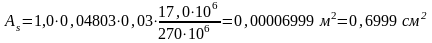 Требуемая площадь арматуры (см2), для полосы шириной b = 1 м вычислена по формуле (3.9)