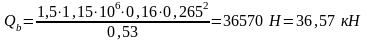 Поперечное усилие Qb, (кН), воспринимаемое бетоном определено исходя из формулы (3.14)