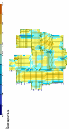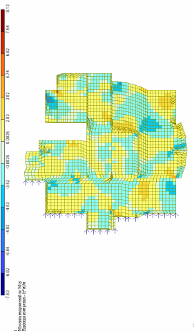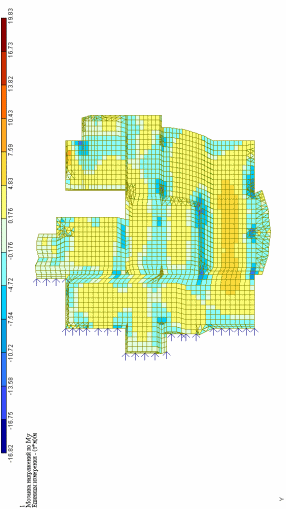 Рисунок А.11 - Усилия Мy в фундаментной плите с учётом пульсации